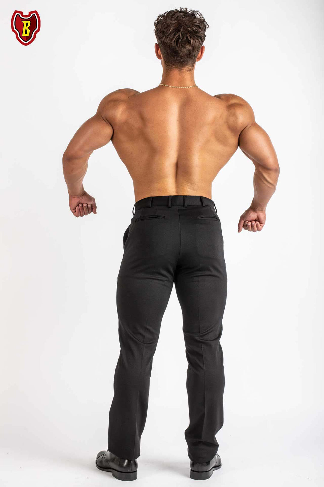 When a bodybuilding judge tells the competitors on stage to "relax," the bodybuilders don't completely let go - they still maintain poise and shape but don't overtly try as hard as when they are flexing. It's the same with Buffery® Relax Slacks.